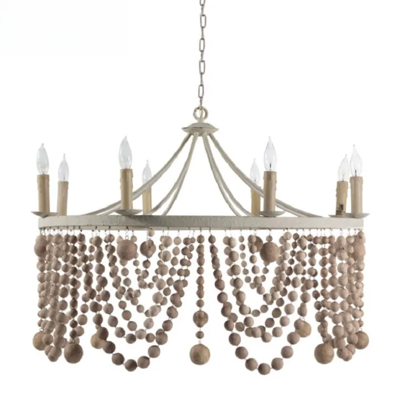 French countryside wooden bead living room pendant light, retro creative wooden art lamp, personalized lighting fixture