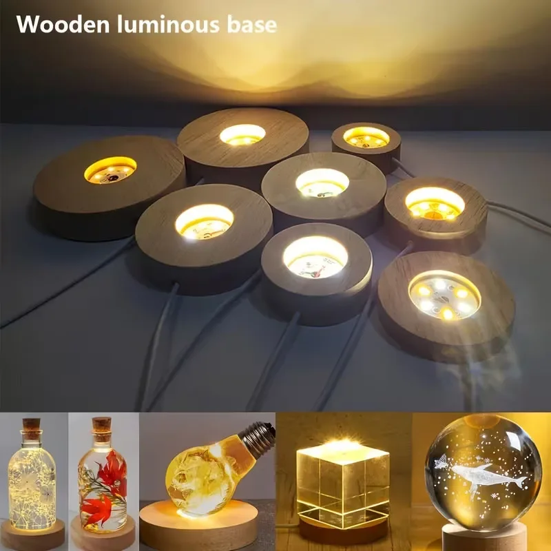 Wood Round LED Night Light Base Art Display Holder USB Lamp Holder for Crystals Glass Ball Resin Art Decoration Display Stand