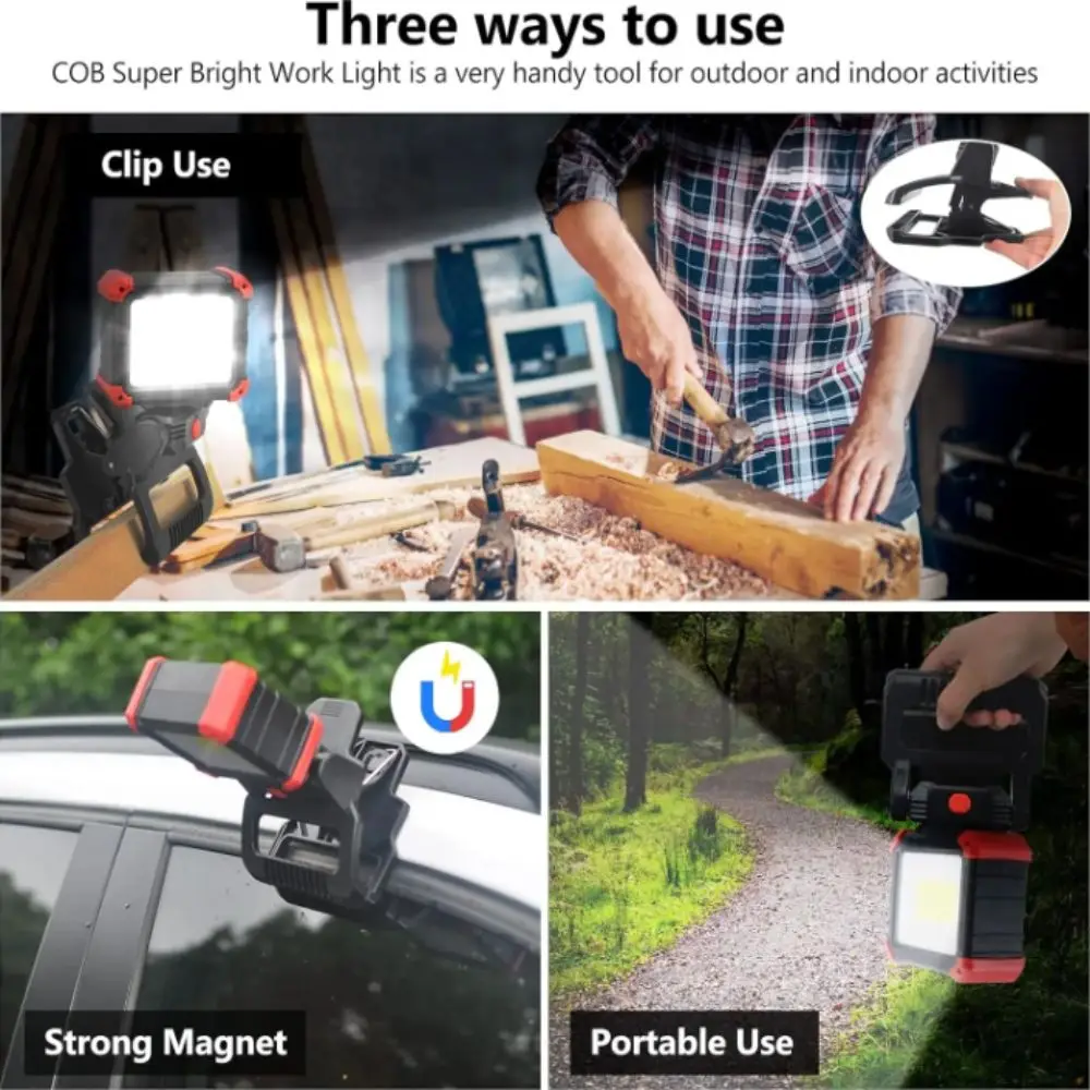 USB Rechargeable COB Work Light Portable Magnetic Car Repair Torch LED Red Light Warning Foldable Outdoor Emergency Flashlight