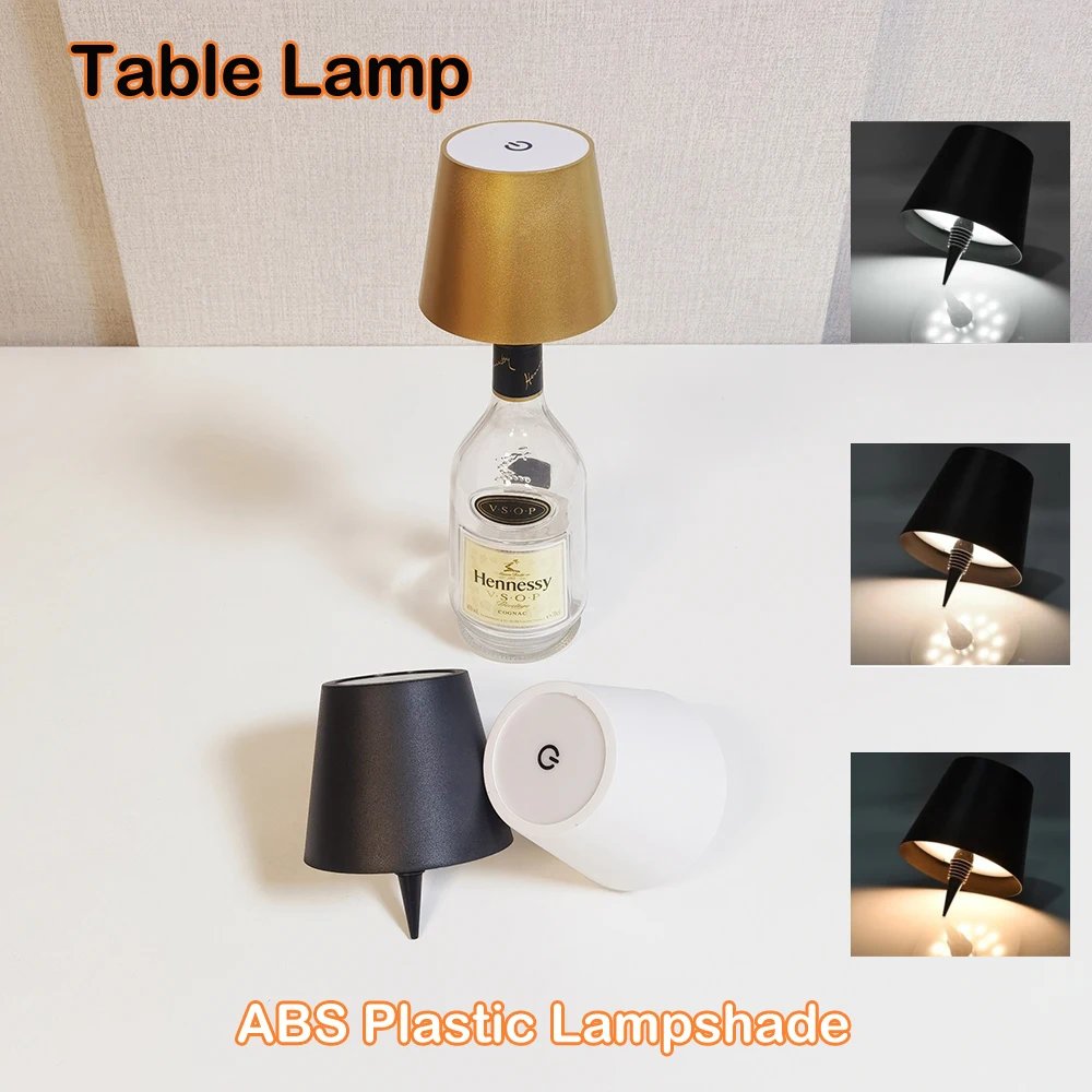 Wireless Bottle Table Lamp Touch Control of 3 Colors Stepless Dimming Night Lamp Suitable for Bar Wine Bottles Desk Lights