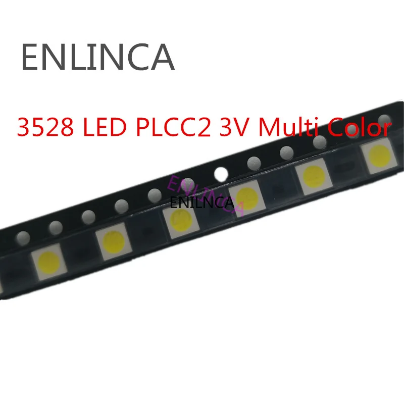 100pcs 3528 LED SMD White Chip PLCC2 Ultra Bright Surface Mount 20mA 3V 7-8LM Light-Emitting Diode 3000K 4000K 6000K 9000K