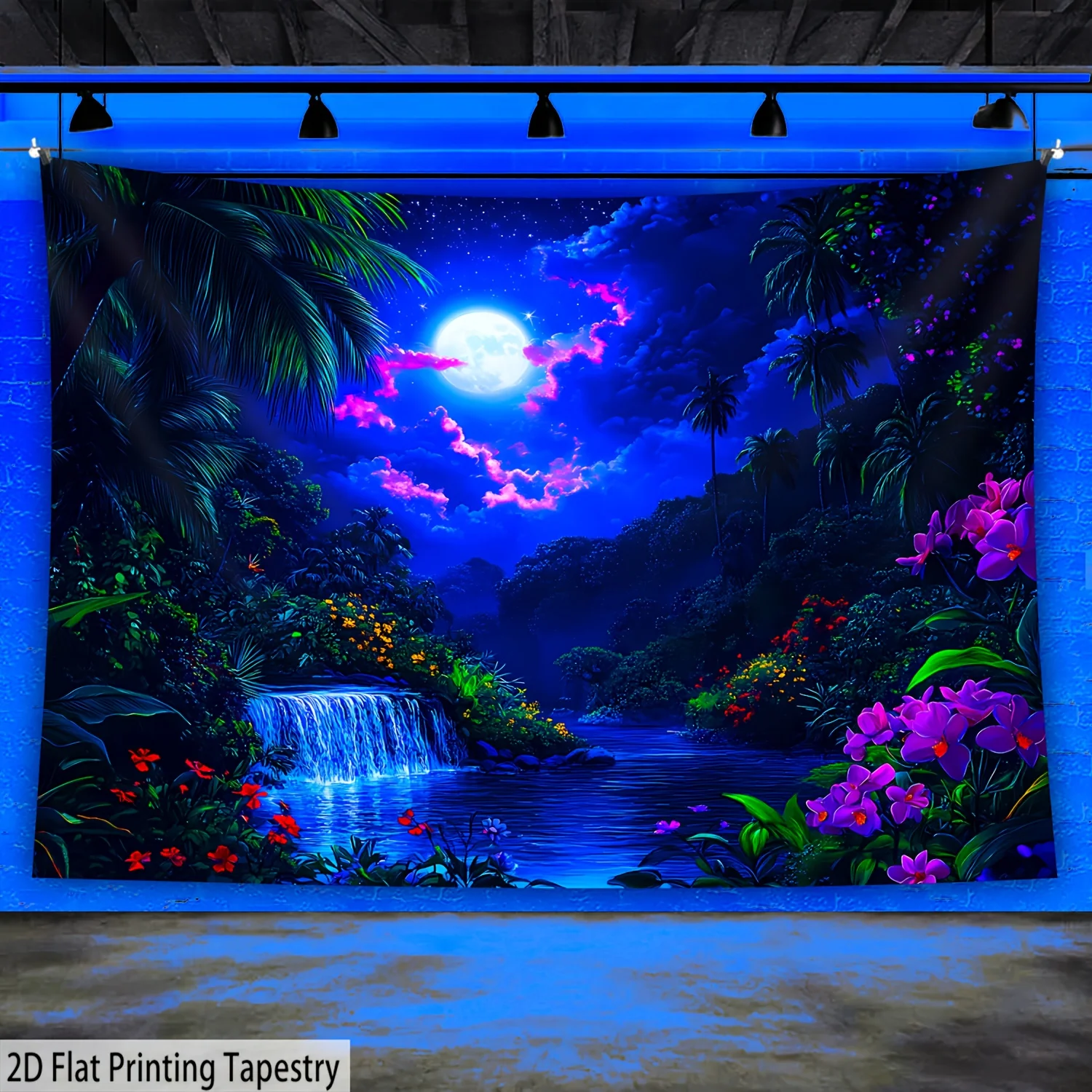 VIKAMA Rainforest Tapestry Tropical Jungle Waterfall Moonlight Mural Living Room Sofa Backdrop Wall Room Decor