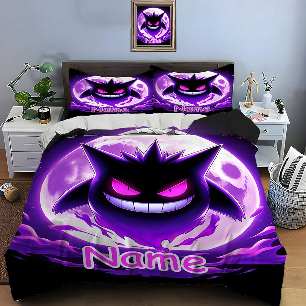Personalized Name Custom Bedding Set Pokemon Gengar 1 Duvet Cover 2Pillowcases Adult Children Bedding Set Luxury Birthday Gift