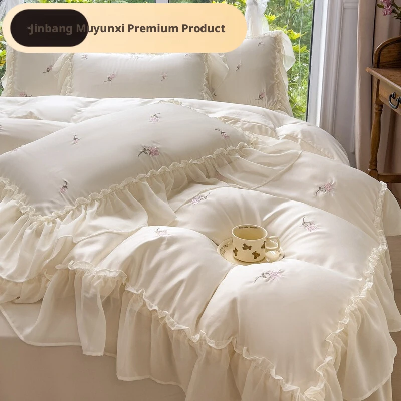 Luxurious French-style washed silk and four-piece set,Ice silk bed sheet and duvet cover