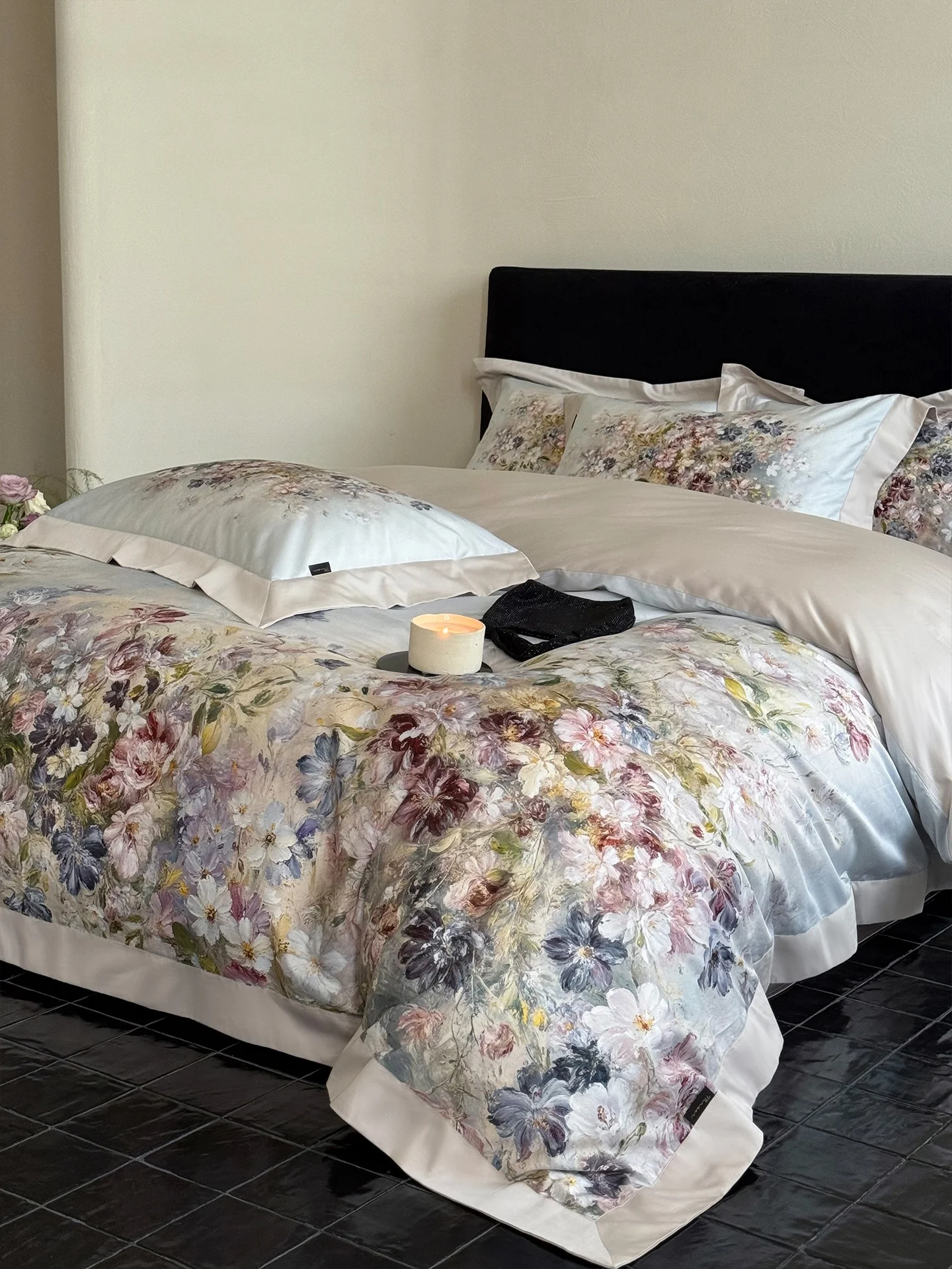 Pure Cotton 60 Tead Count Bedding Set Four-Piece Floral Dot Patterned Quilt Cover Duvet Protector Full Color Cotton eet