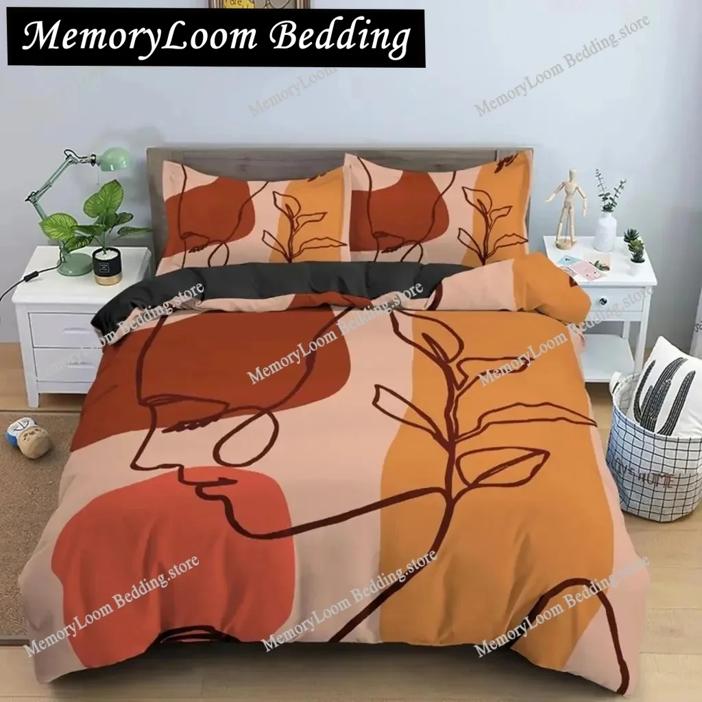 Nordic Line Figure Portrait Bedding Set Abstract Character Duvet Cover King Size Quilt Cover Polyester Modern Style Room Decor