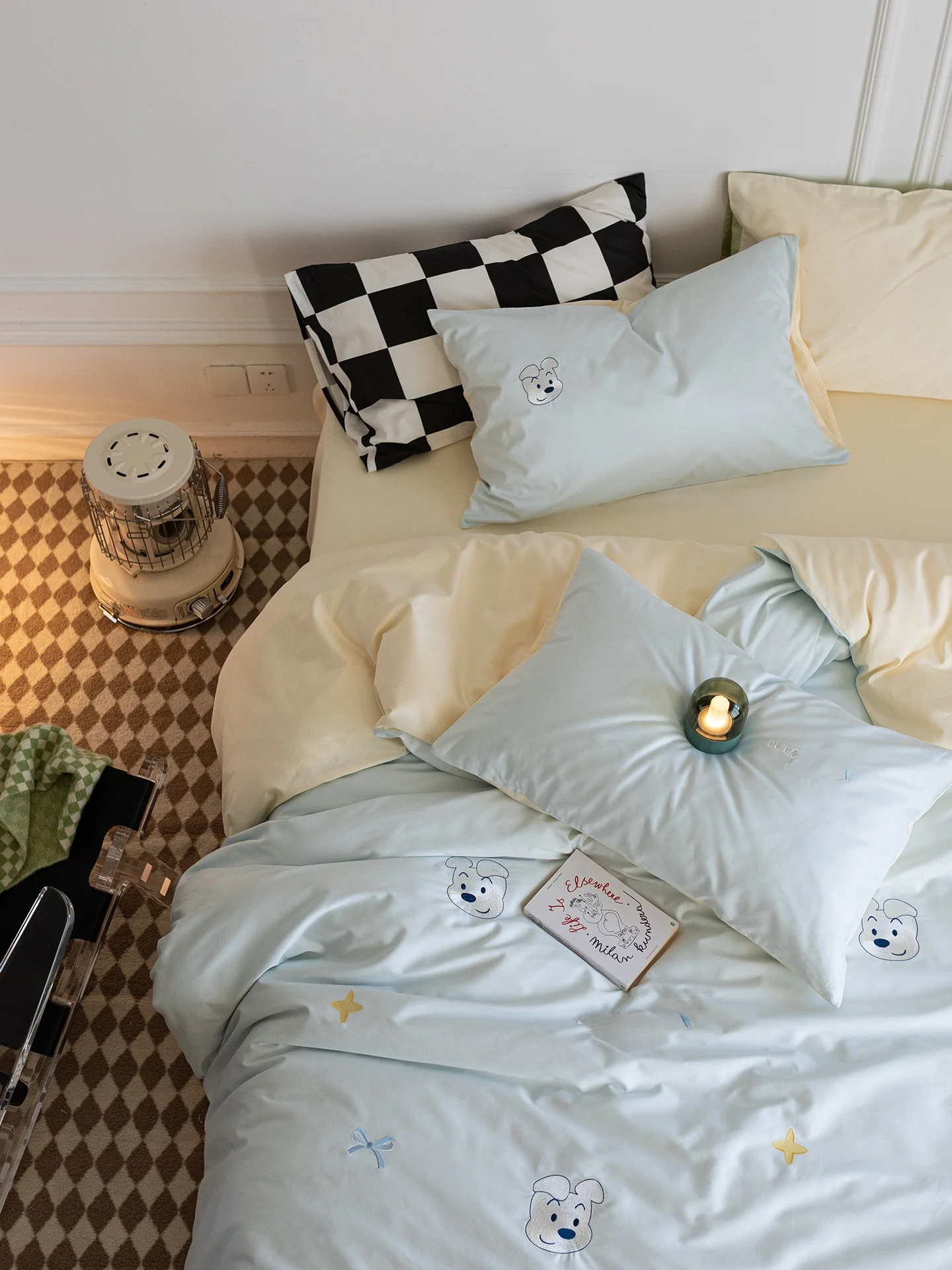 Artistic Pure Cotton Bedding Set Four-Piece Color Woven Bed Sheet Quilt Cover Dormitory Bedding Three-Piece Set Soft Cotton