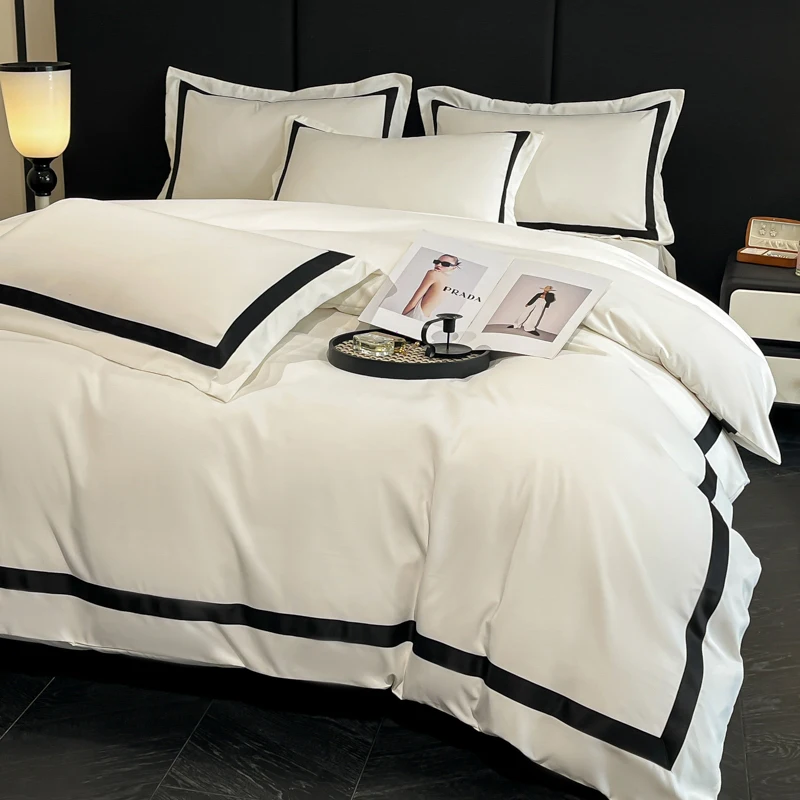 Korean Grid Printed Bedding Set with Lace Washed Cotton Skin Friendly Cozy Comforter Cover Sets Single Double Queen Bedclothes