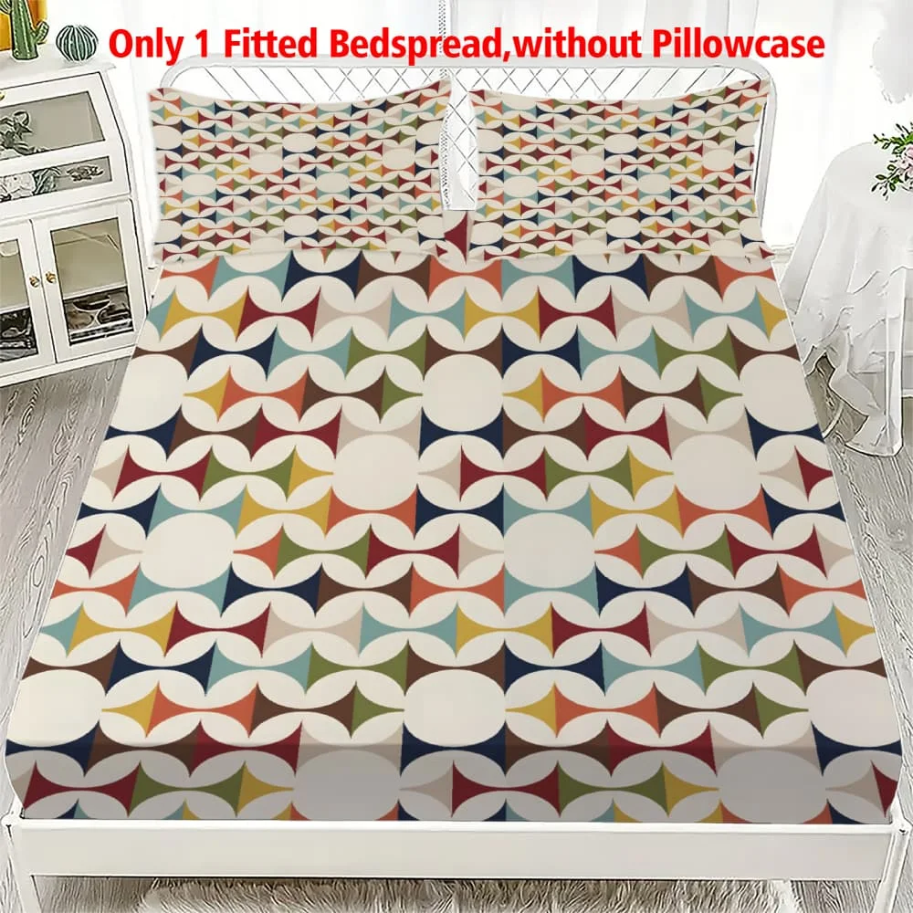 1pc Retro Geometric Circle Print Fitted Sheet Deep Pocket Elastic Mattress Cover Single Double Queen King Bedroom Decor