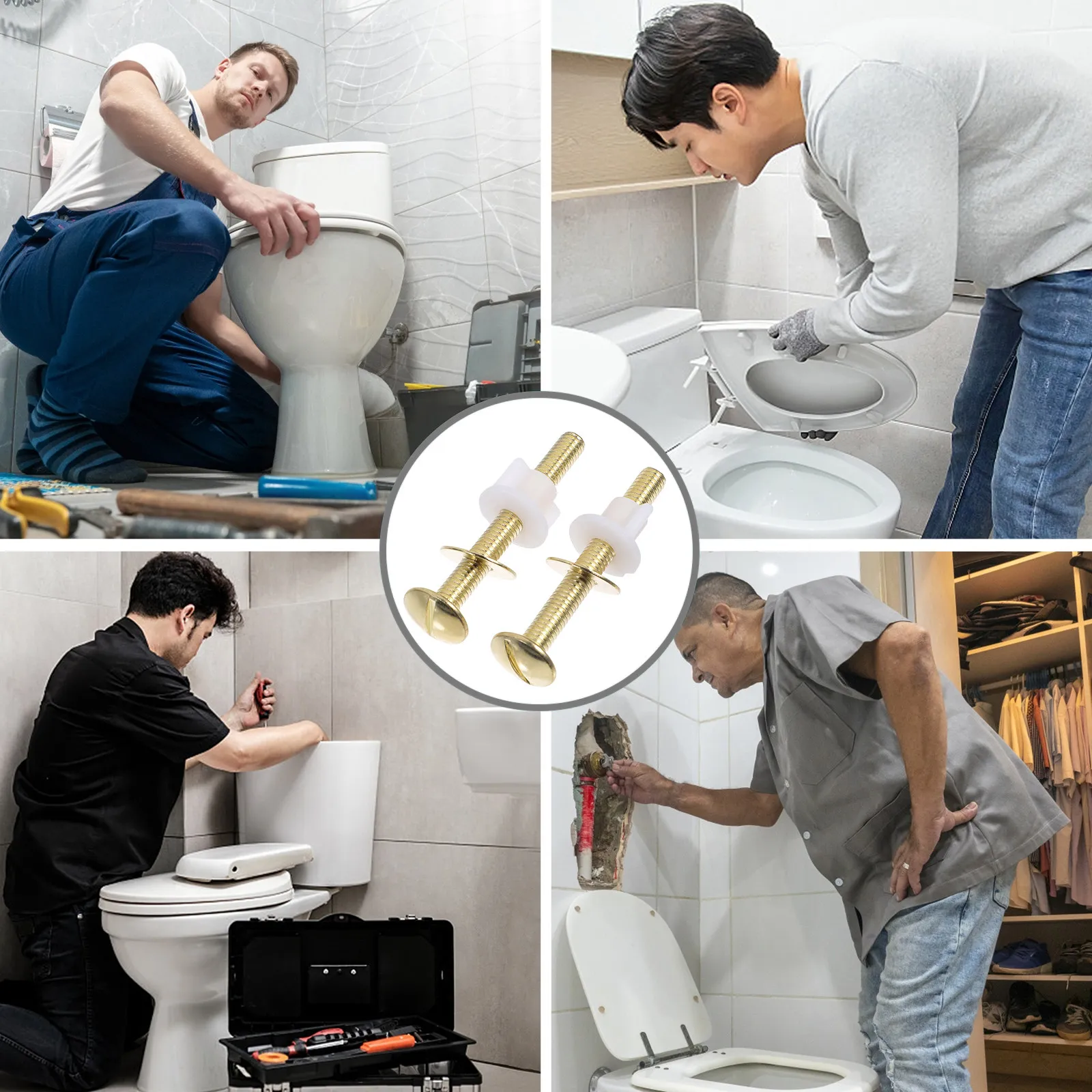 4Pcs Toilet Seat Bolt Installation Screws Premium Iron-Plated Copper Durable Toilet Tank Gasket Replacement Parts