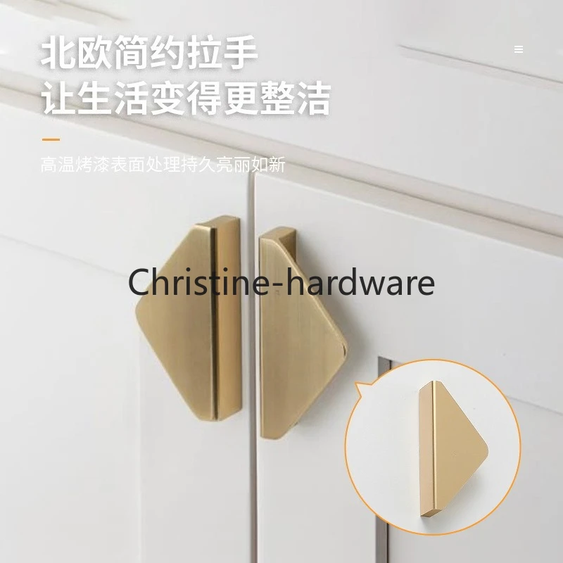 LKLCupboard Door Handle Pure Copper Nordic Modern Simple Drawer KNOB Kitchen Cabinet Invisible Triangle Brass Handle
