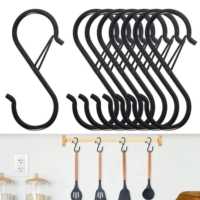 VKKM 10 Pieces Windproof S-shaped Metal Hooks with Snap Design, Wardrobe Bags, Hats, Clothes Anti Drop Hooks.