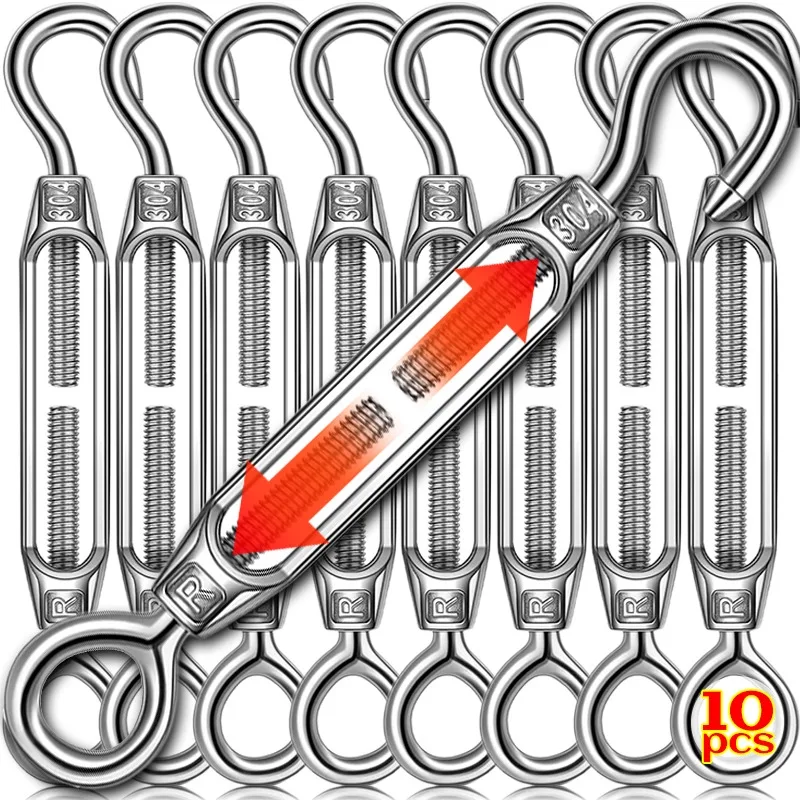 M4 M5 M6 Turnbuckle Adjustable Rope Tightener Stainless Steel Hook and Eye Rigging Sailing Tension Adjustable Wire Rope Hardware