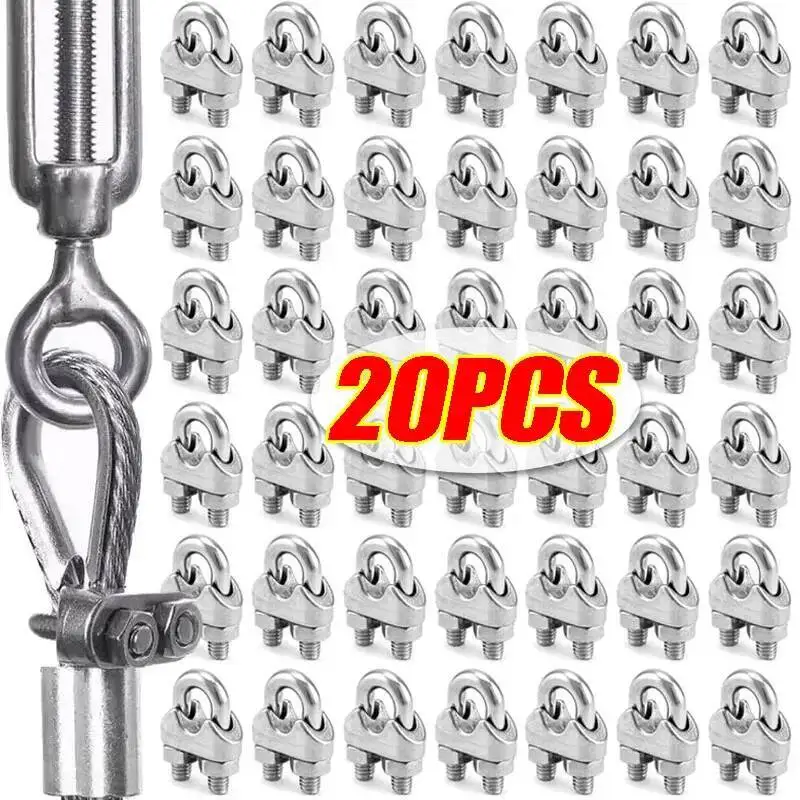 20/1Pcs Stainless U-Type Cable Clamp M5 M3 Steel Wire Rope Clip U Bolt Saddle Fastener Clothesline Tightener Hardware Tool