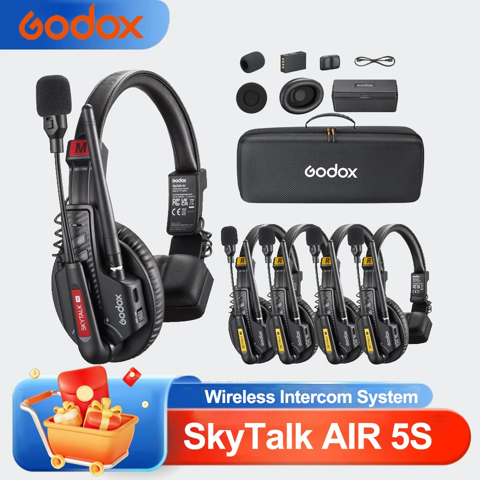 GODOX Skytalk Air 5S 2.4G Full-Duplex Wireless Intercom System for Group Communication with Noise Free Design 20H Battery Life