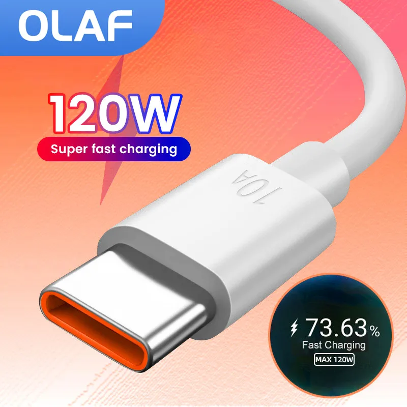 Olaf 10A Type c Fast Charging Cable for Xiaomi Mi 12 Poco Huawei Mate 40 50 Mobile Phone 120W USB C Charger Cable Data Cord Wire