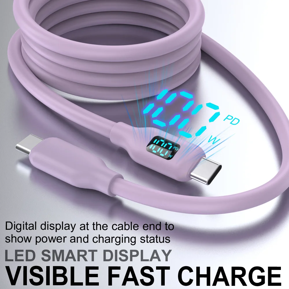 1PC 100W USB C Fast Charging Cable Super Flexible Silicone Charger Cable Purple for Phone Tablet Laptop