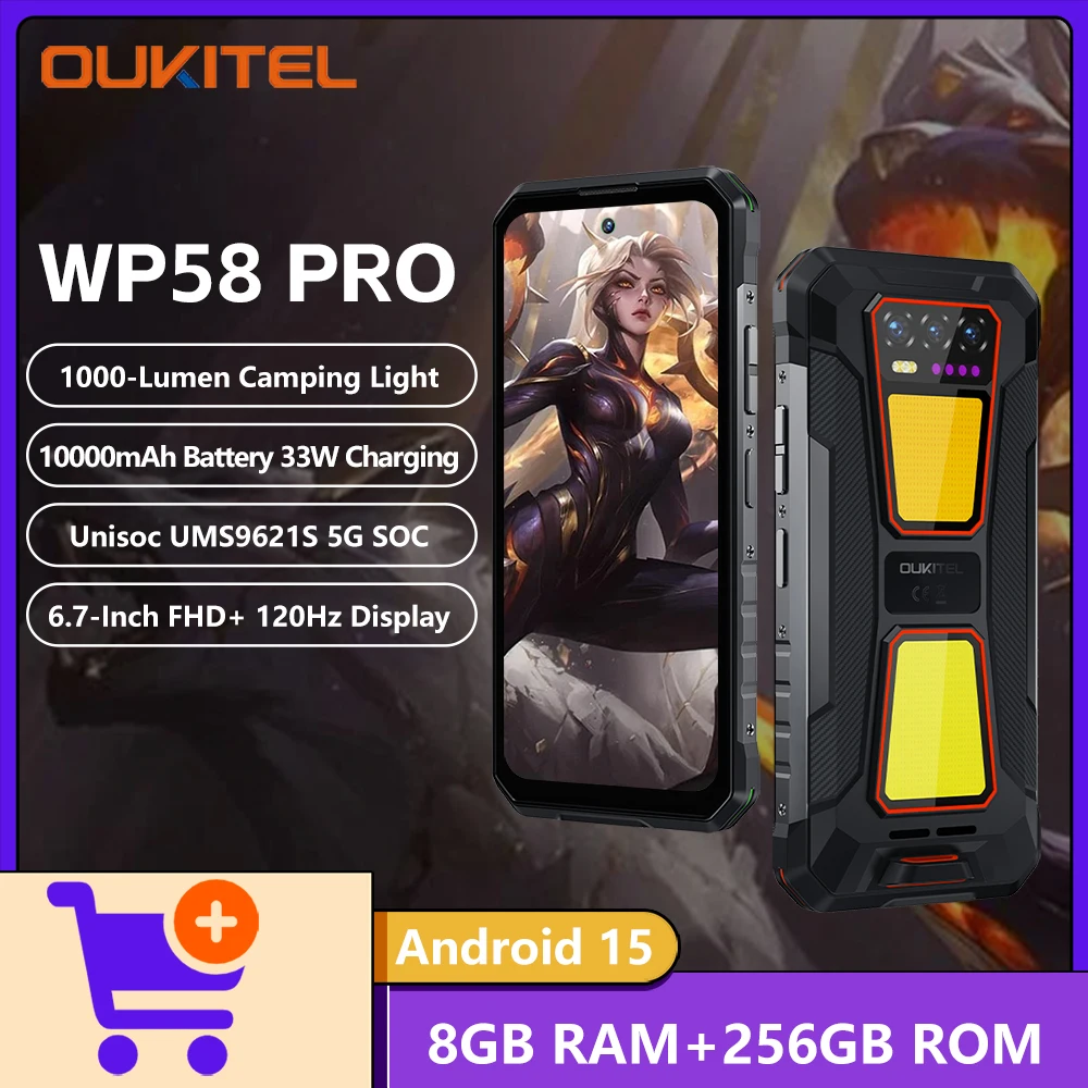 2025 NEW OUKITEL WP58 PRO 5G Rugged Phone 6.7-Inch 120Hz Display 24(8+16)GB+256GB 1000-Lumen Dual Camping Lights Android 15