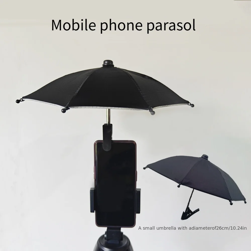 Mini Phone Sun Shade Umbrella, 26cm Portable Outdoor Parasol for Summer, Anti-Glare & Heat Block, Universal Clip-On Design