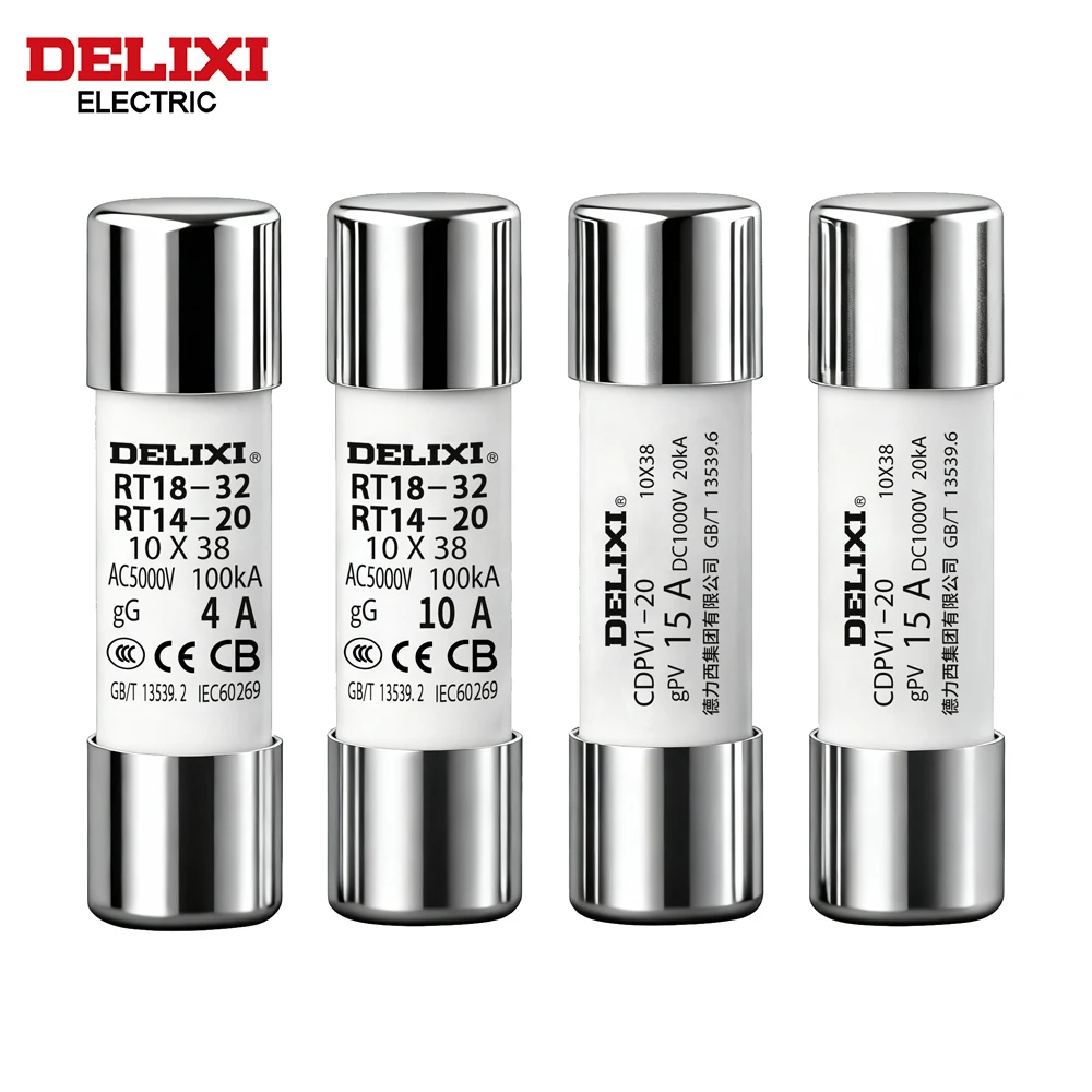 DELIXI Solar DC 1000V PV Fuses/AC Fuse for Solar System Short Circuit Protection 1A 2A 3A 4A 5A 6A 8A 10A 15A 20A 25A 30A 32A