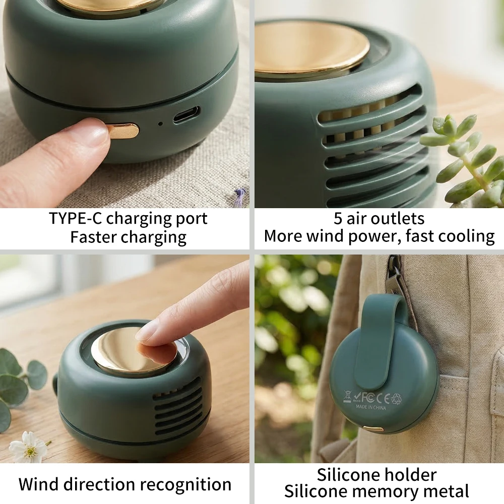 Mini Clip Fan Hanging Waist Neck Fan Girl Electric Air Cooling Fan USB Leafless Fan for Outdoor Camping Fishing Car Accessorie