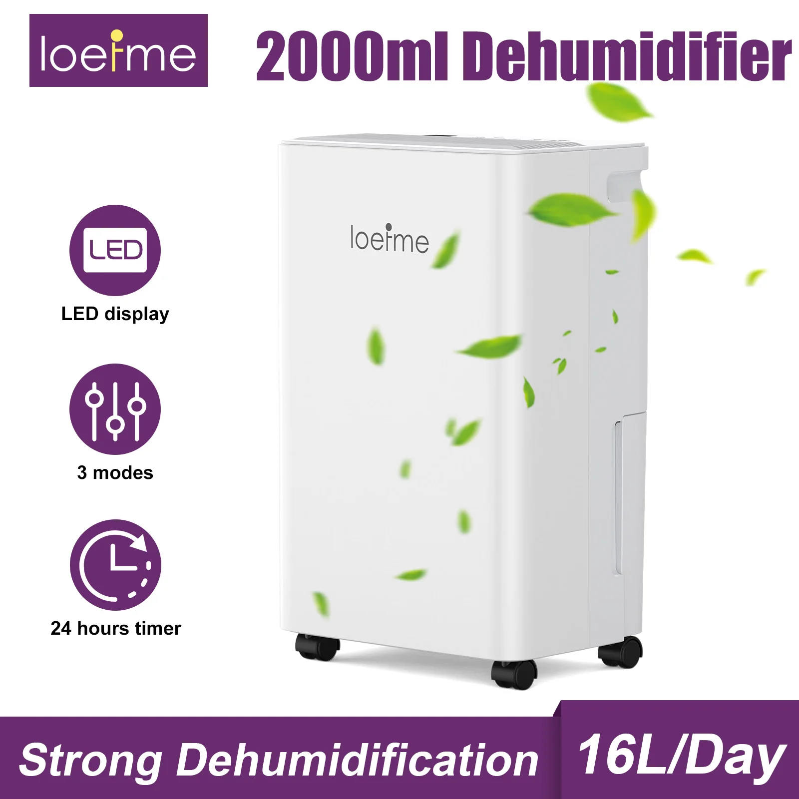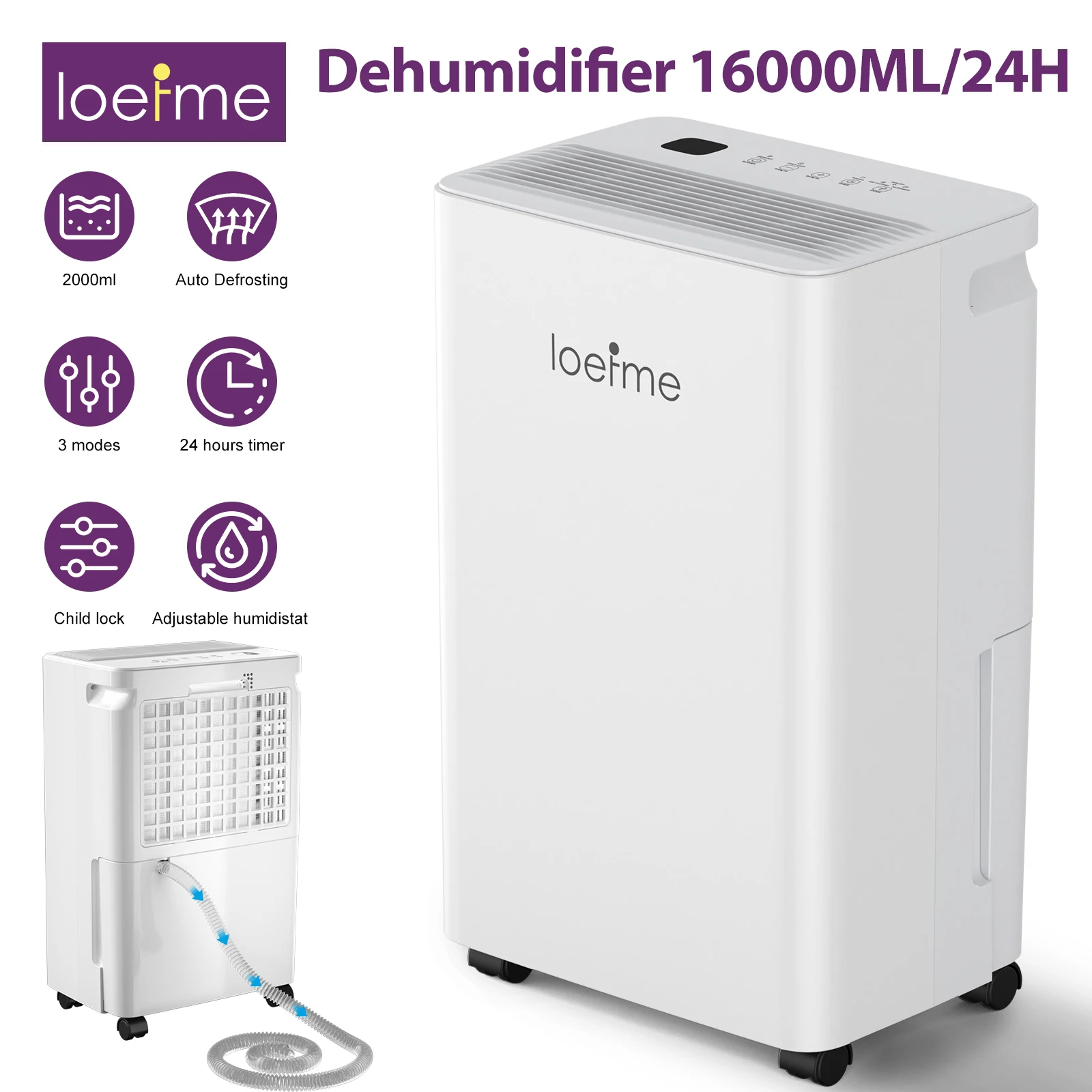 LOEFME 16000ML/24H Air Dehumidifier 2000ML Moisture Absorbers Energy Saving Home LED Display Defrosting with Drain Hose 1M & 3M