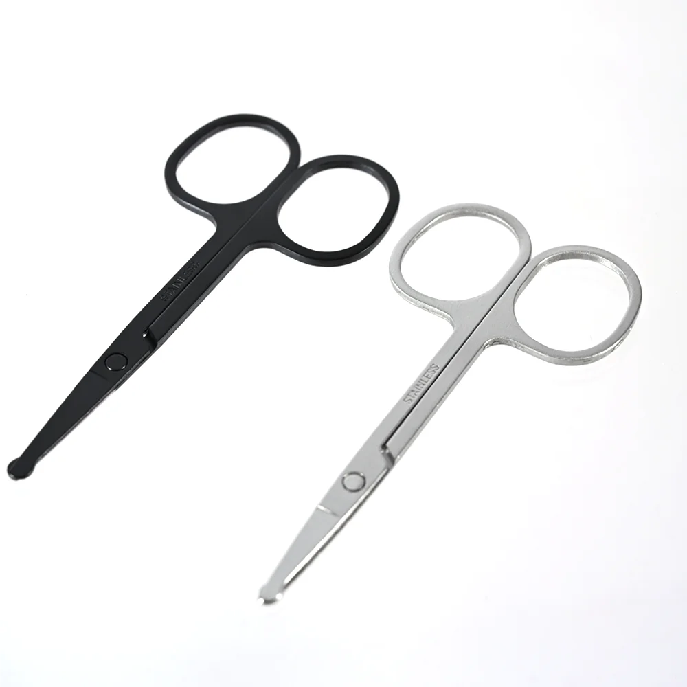Round Head Nose Hair Trimming Scissors Stainless Steel Silver Facial Trimming Tweezer Black Mini Nose Hair Trimmer Beauty Tool