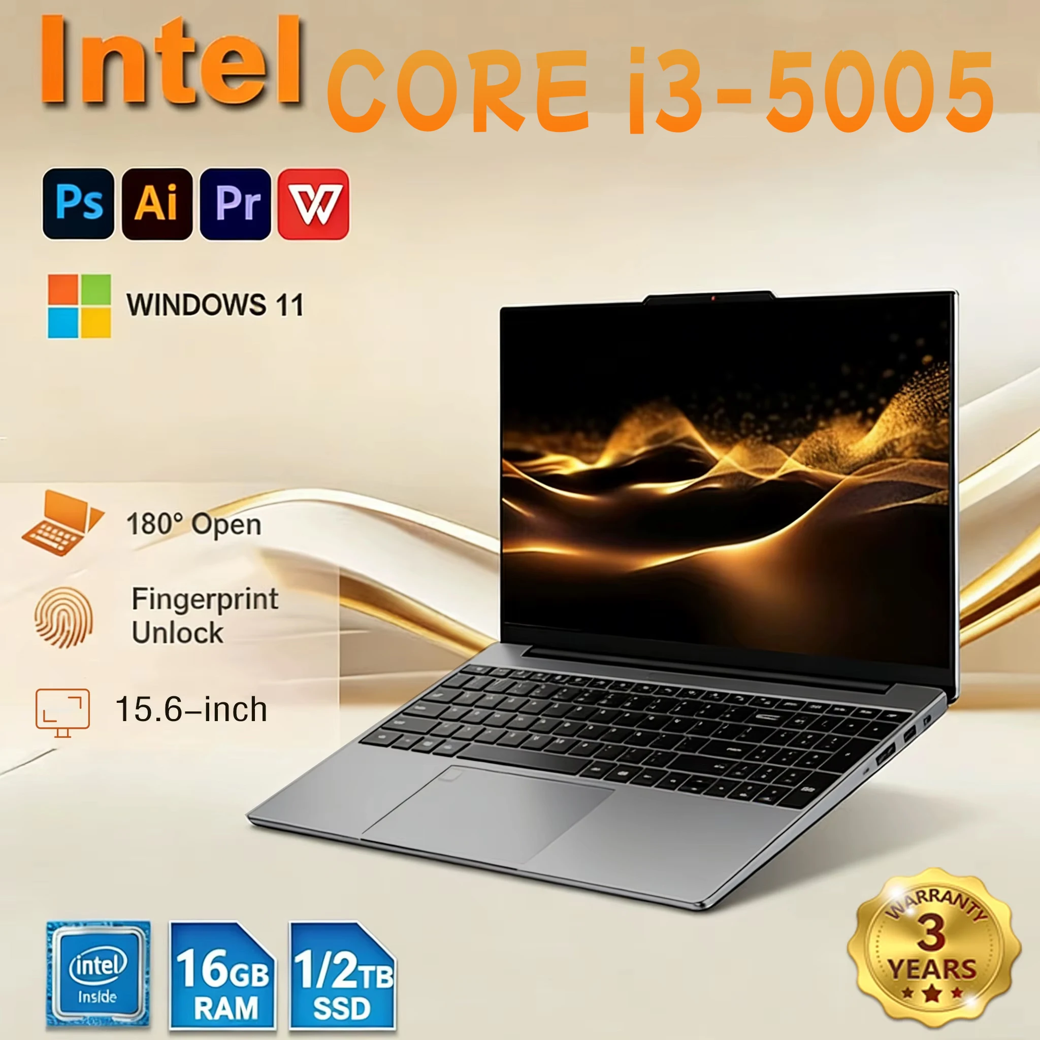 2026 15.6" Windows 11 Laptops Computer Intel Core i3-5005 Computer 16GB RAM 1/2TB SSD Fingerprint Unlock Notebook Gaming Laptops