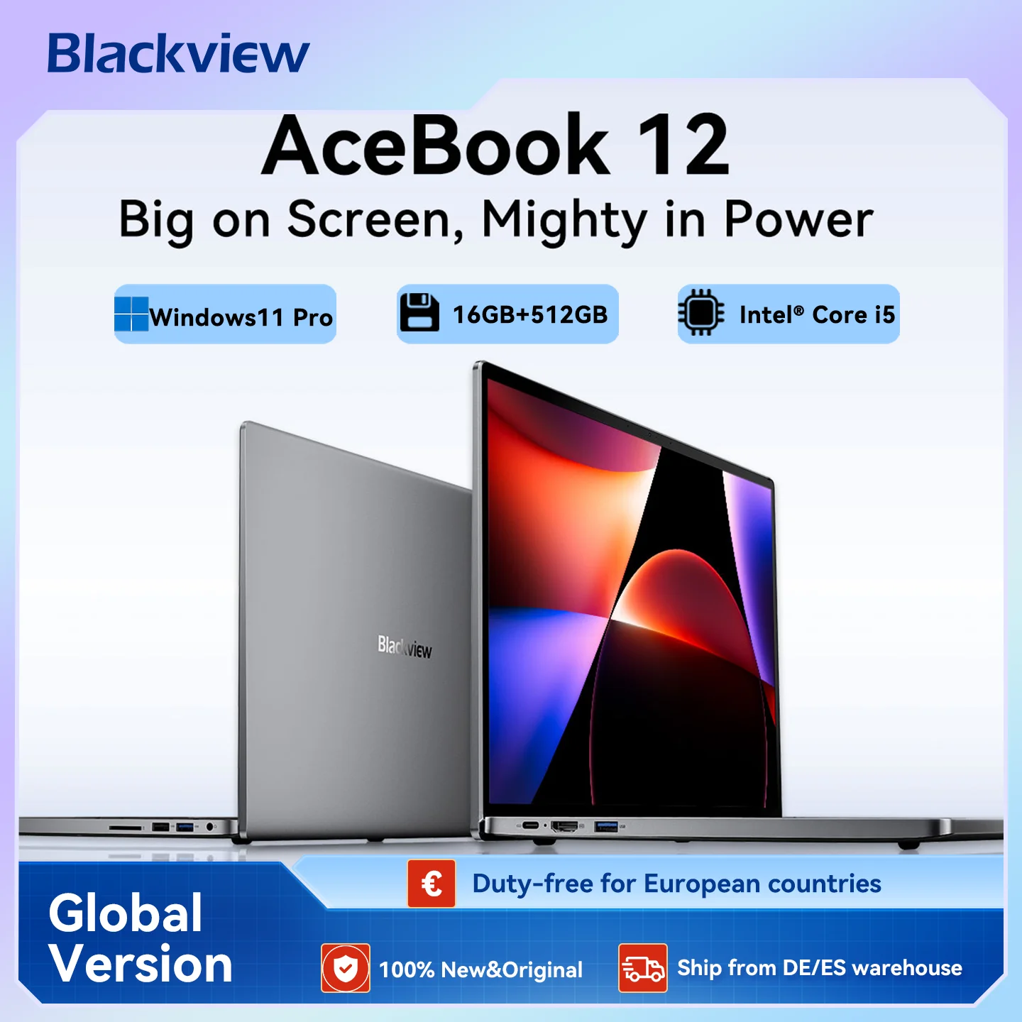 Blackview Laptop Acebook 12, Laptop 16 Inch, 16GB DDR4, 512GB SSD, Windows 11 Pro, Intel Core i5-1030NG7, 57Wh Battery,Notebook