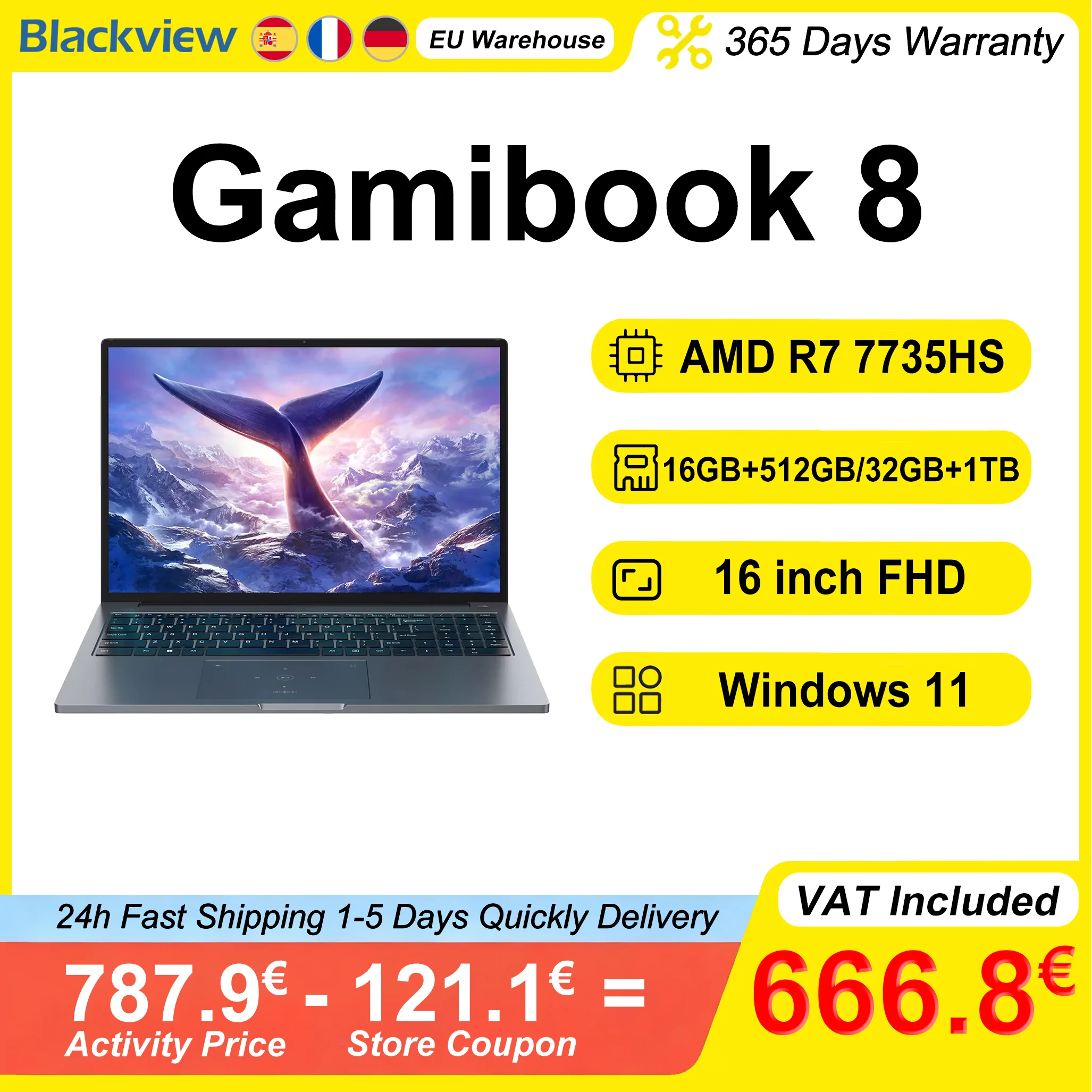 Blackview GamiBook 8 Laptop 16 Inch AMD R7 7735HS LPDDR5 16GB/32GB RAM 512GB/1TB ROM Windows 11 Pro BT5.2 Wifi6