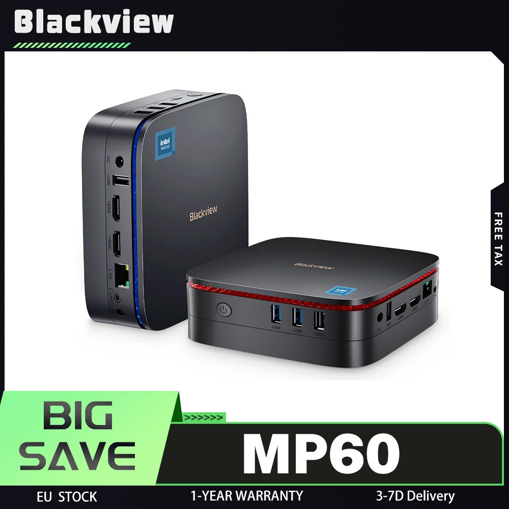 Blackview MP60 Mini PC, Intel N95 4 Cores Up to 3.4GHz, 2*HDMI 4K 60Hz Dual Screen Display, 2.4/5GHz, 16GB RAM 512GB SSD
