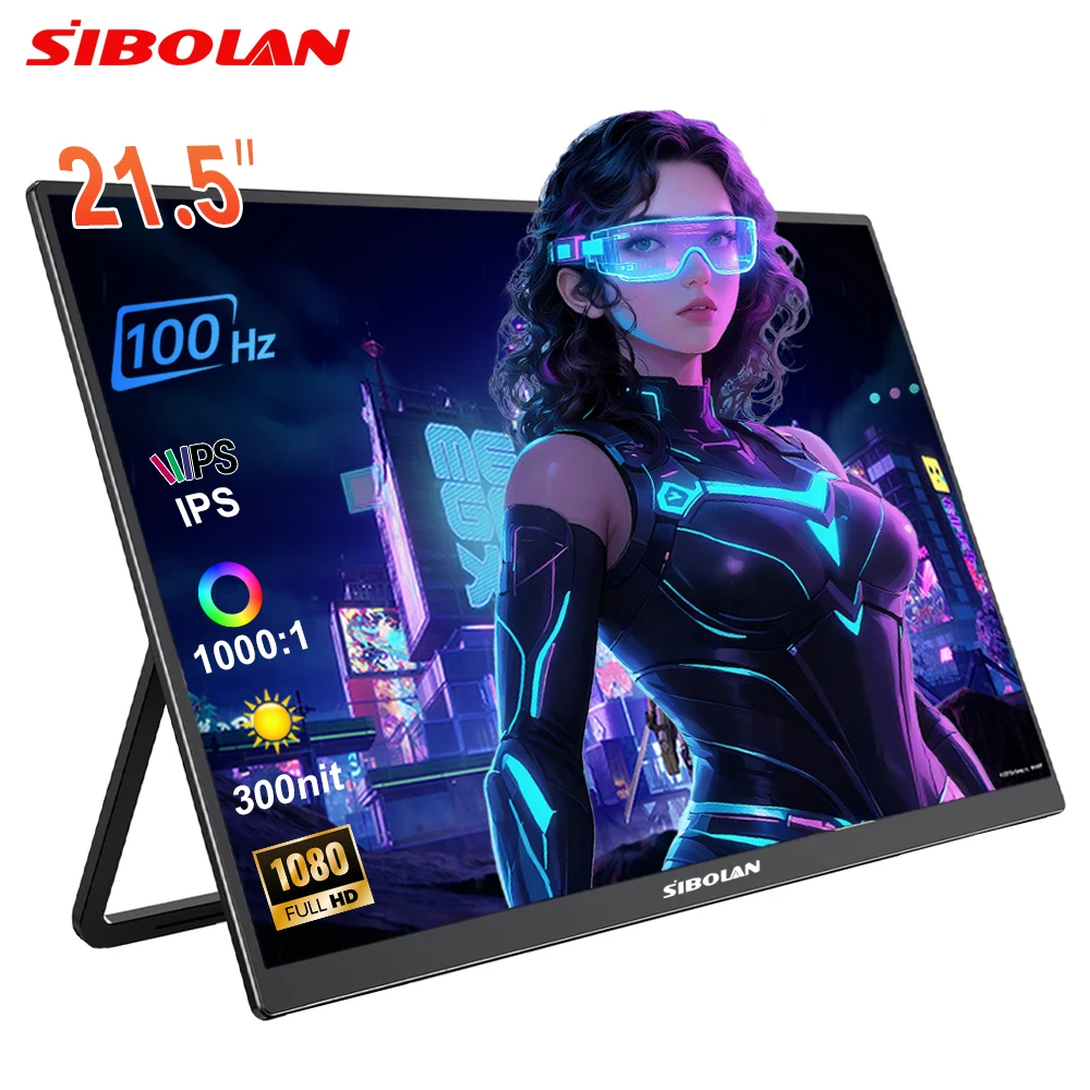 Sibolan 21.5 inch Portable Monitor 1080P 100Hz 72% sRGB USB C HDMI HDR Plug Stand IPS Screen Extender For Wins & Mac, Gaming