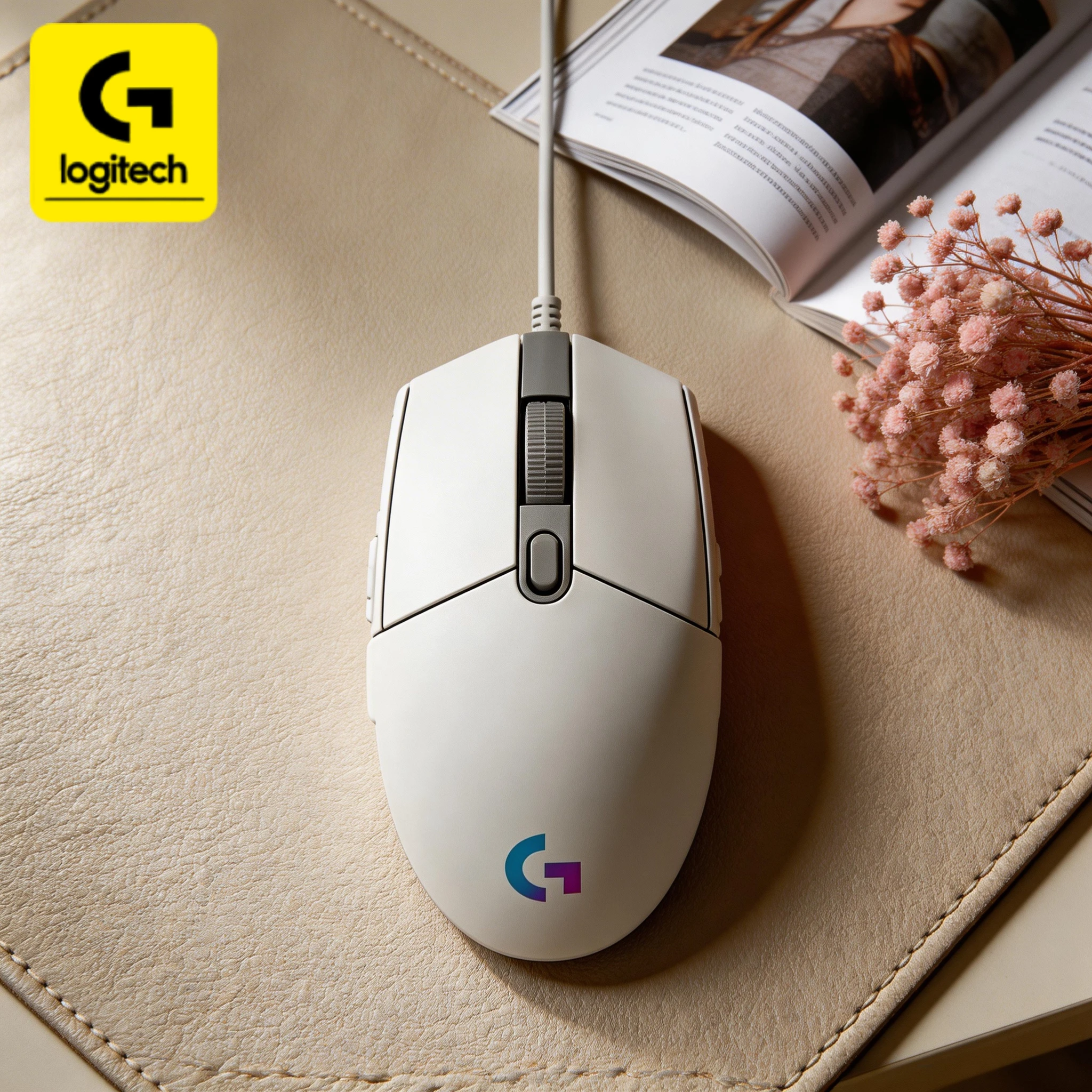 Logitech G203/G102 LIGHTSYNC Wired Mouse, featuring RGB synchronized lighting effect and 6 programmable keys