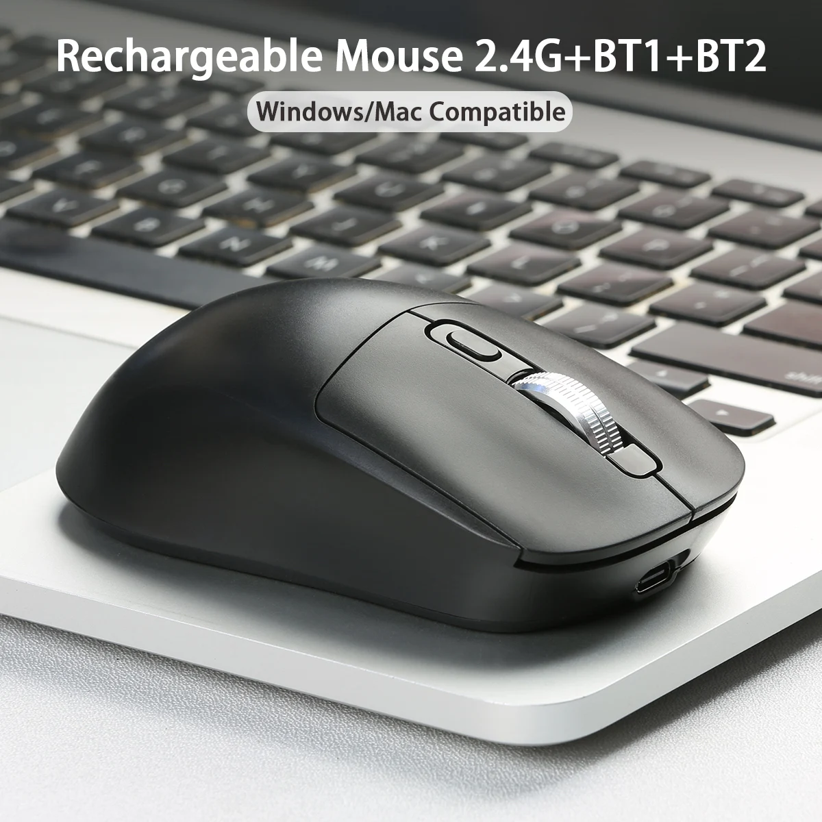 Rechargeable Bluetooth-Compatible Gaming Mouse Wireless Mouse (Tri-Mode: BT1/BT2+2.4Ghz) Ergonomic Mice for PC/Laptop/Macbook