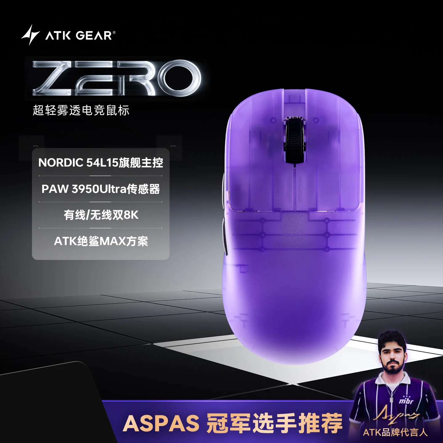 ATK Blazing Sky ZERO Ultralight Wireless Gaming Mouse Dual-Mode 8000Hz PAW3950 Ultra for FPS Esports Gamer