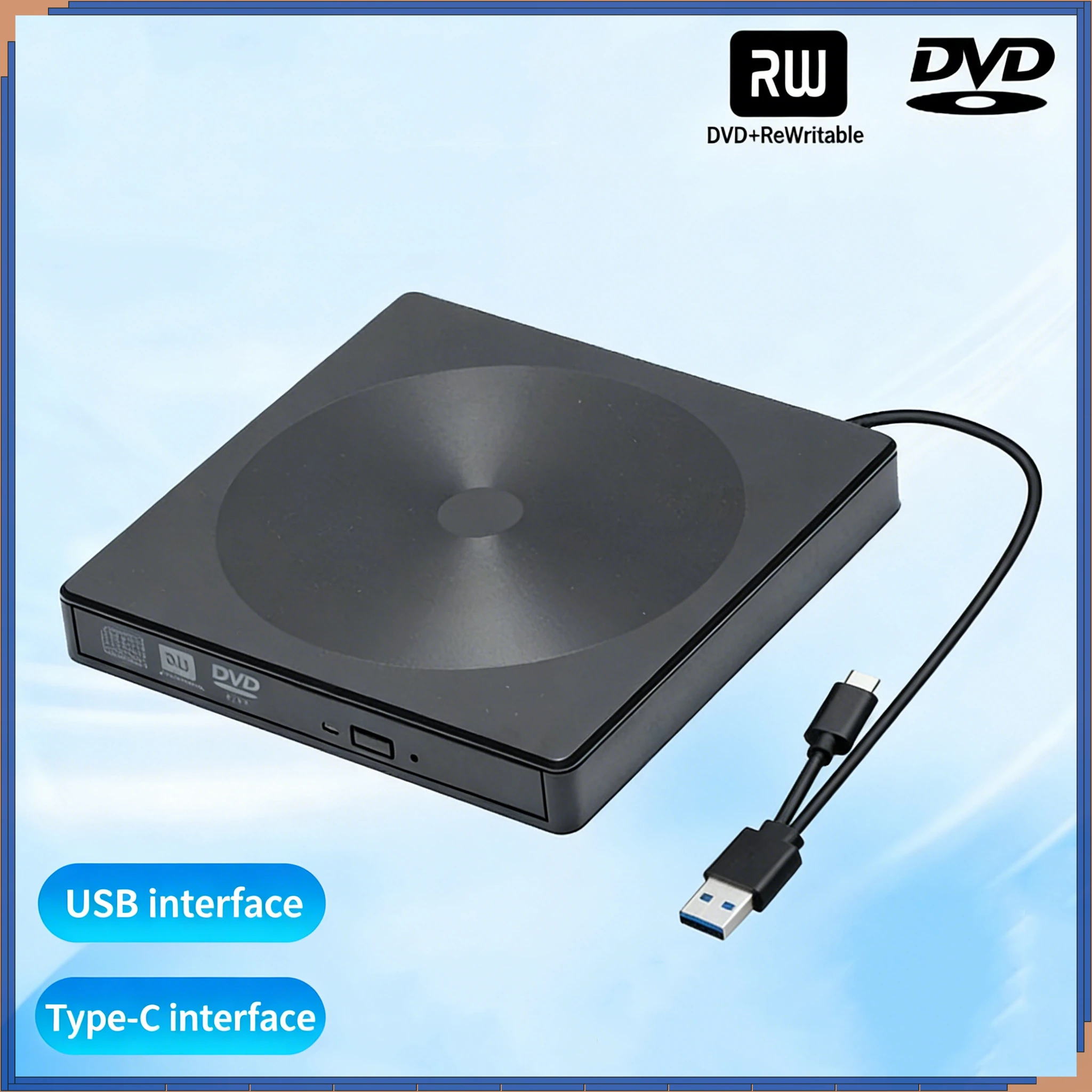 2 in 1 USB3.0 Type C Slim External DVD RW CD Writer Slim Optical Drive Burner Reader Player Tray Type Portable For PC Laptop