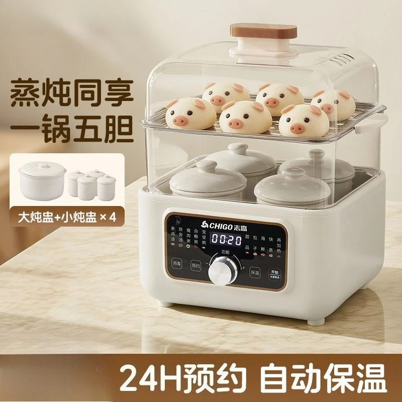 Chigo electric stew cup water household bird's nest soup stew ceramic complementary food steamer electric stew pot