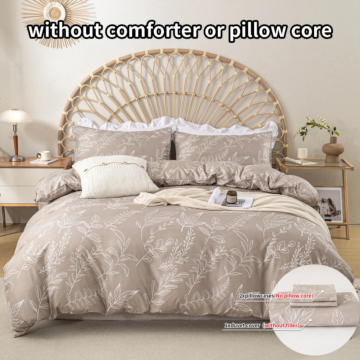 3pcs/set Leaf Floral Pattern Duvet Cover Set(1 Duvet Cover & 2 Pillowcase)Soft And Skin-Friendly Duvet Cover Bedding Set
