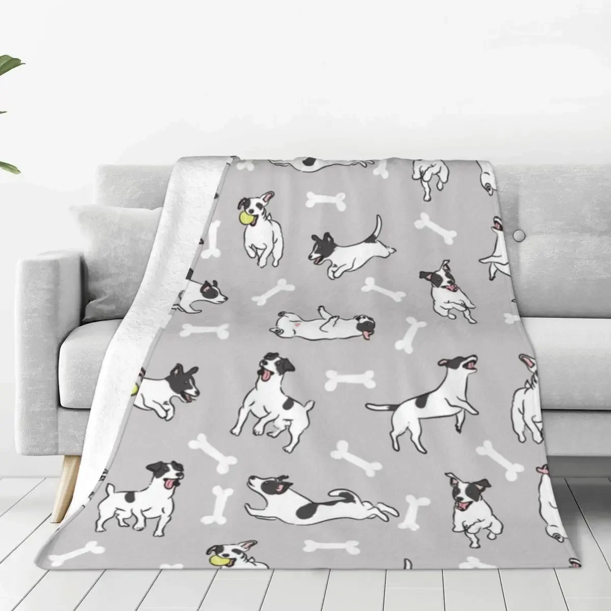 Jack Russell Terrier Flannel Blanket Gray Dog Soft Warm Bedding Throws for Chair Sofa Bed Camping Bedspread Sofa Bed Cover