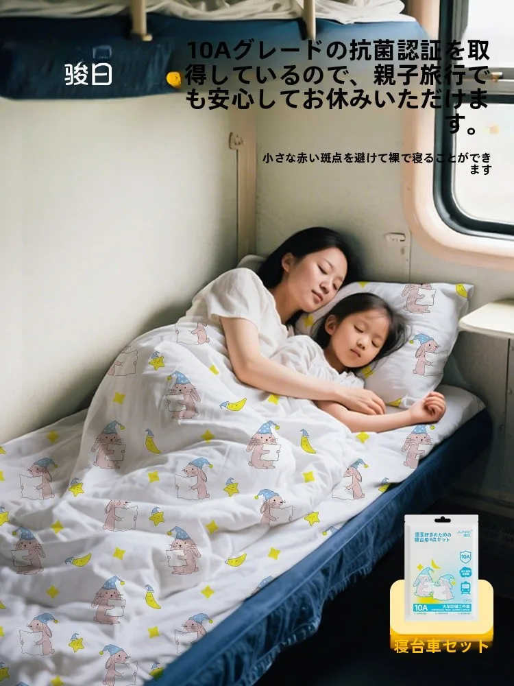 Portable Travel Disposable Bedding Set Tee-Piece Suite Quilt Cover Pillowcase Dirt-Resistant Linen for Train S Berth