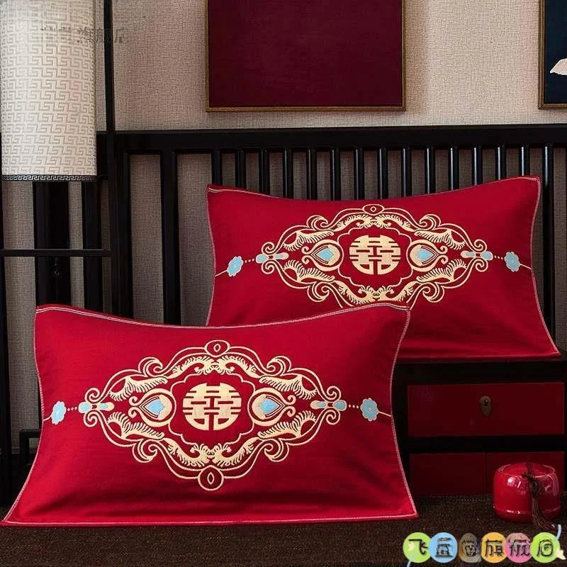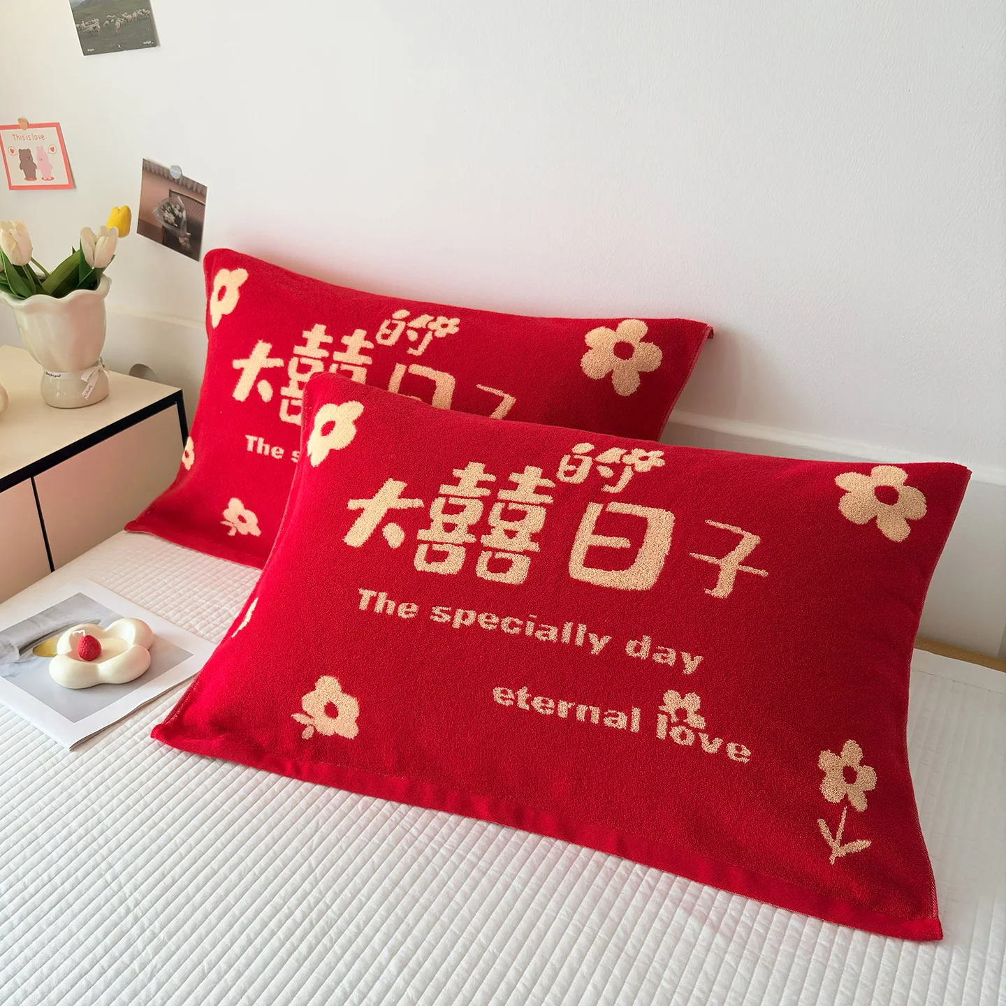 Wedding Cotton Towels Couple Pillowcases Red Celebration Bridal Gifts Pure Cotton Bedding Accories Single Person Use