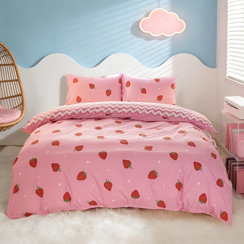 3pcs/set Small Strawberry Print Duvet Cover Set(1 Duvet Cover & 2 Pillowcase)Soft And Skin-Friendly Duvet Cover Bedding Set