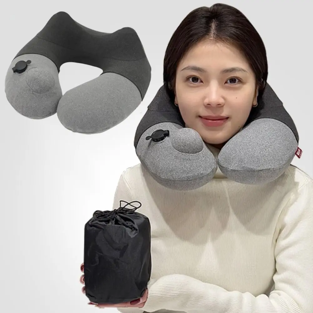 Foldable Press Type Inflatable Travel Pillow Washable Lightweight U-shaped Pillow With Storage Bag Detachable