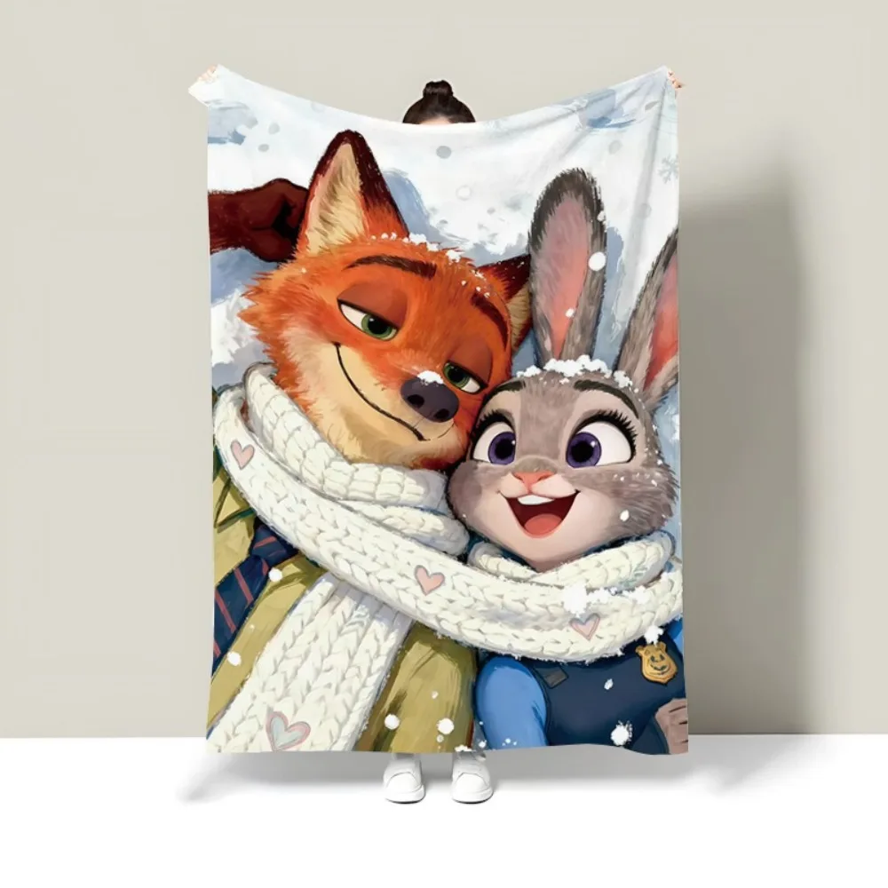 Cartoon Zootopia 2 Blanket, Cute Lap Throw Shawl, Office Nap Flannel Sofa Blanket, Gift for Boys and Girls