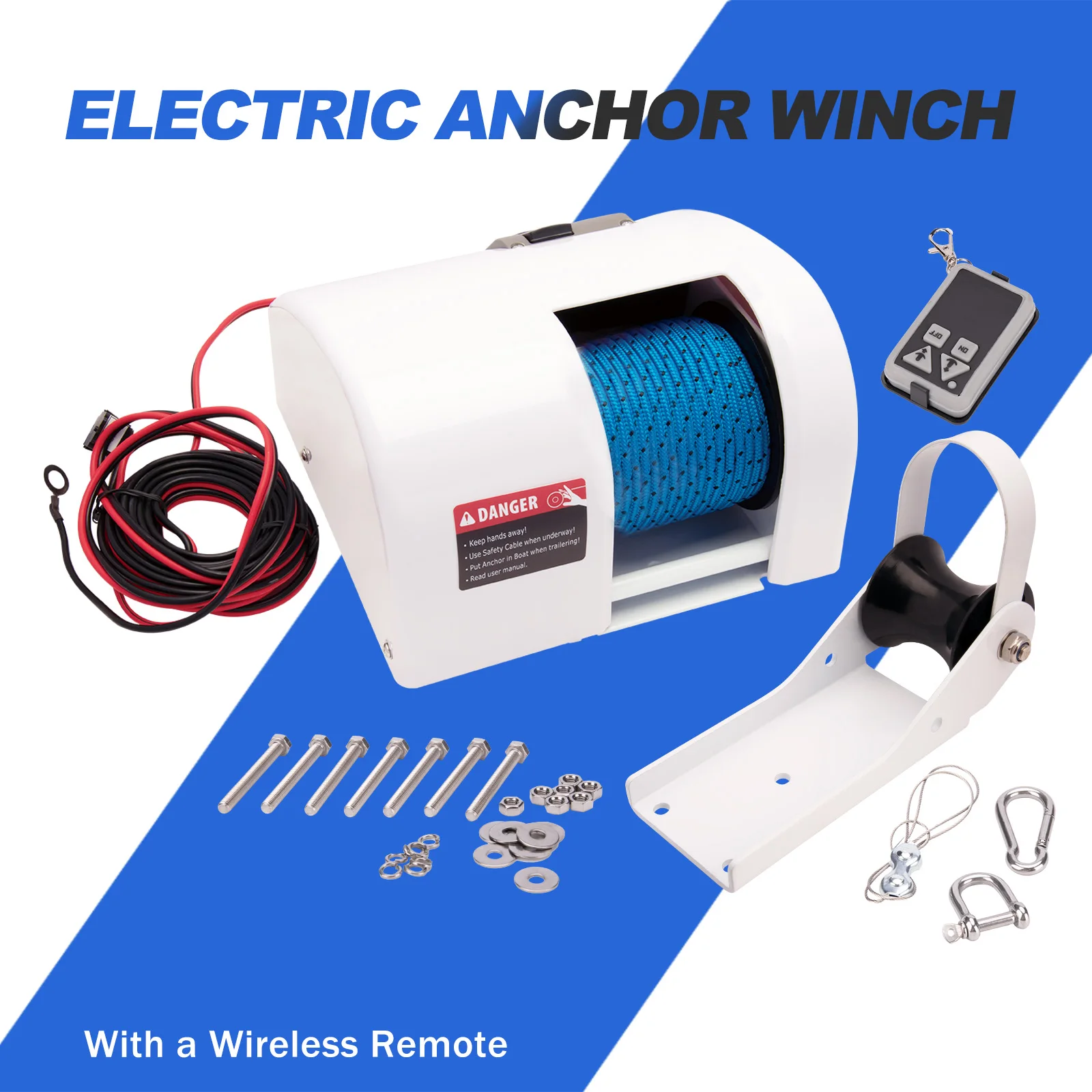 12V Electric Anchor Winch for Boats – 25LBS Saltwater-Ready Marine Anchor System with Wireless Remote Control Kit