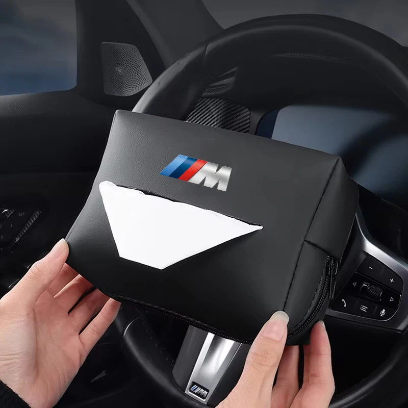 Leather Car Tissue Bag Paper Towel Storage Box For BMW X1 X2 X3 X5 X4 X6 X7 G30 G20 G32 G11 G12 F40 F30 F20 F10 F34 F07 Hub Cap