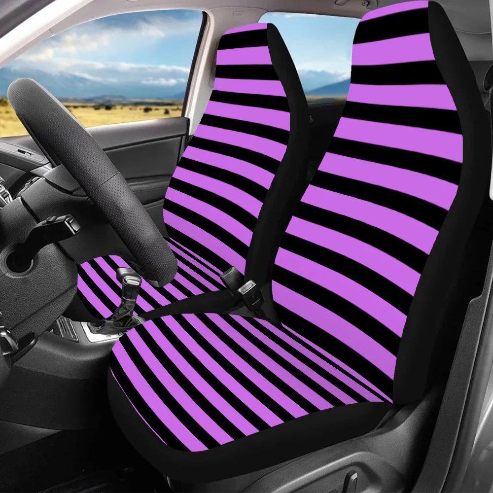 2pcs Striped Purple Background Car Seat Covers - Universal Fit For Cars, SUVs, Trucks | Durable Canvas With Sponge Filling | Sty