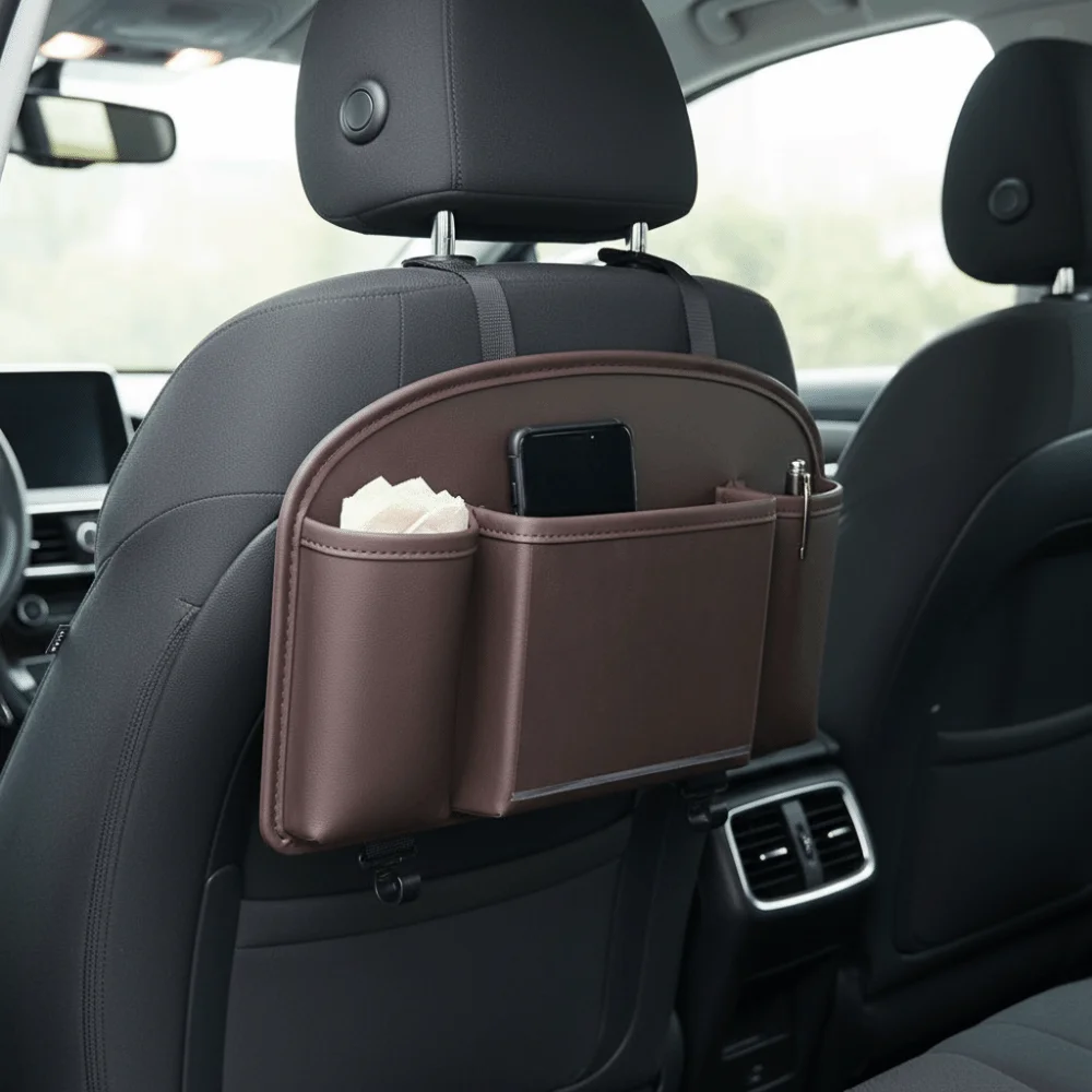 Leather Material Car Back Seat Organizer Multifunctional Design Hanging Storage Bag Car Organizer Practical Construction