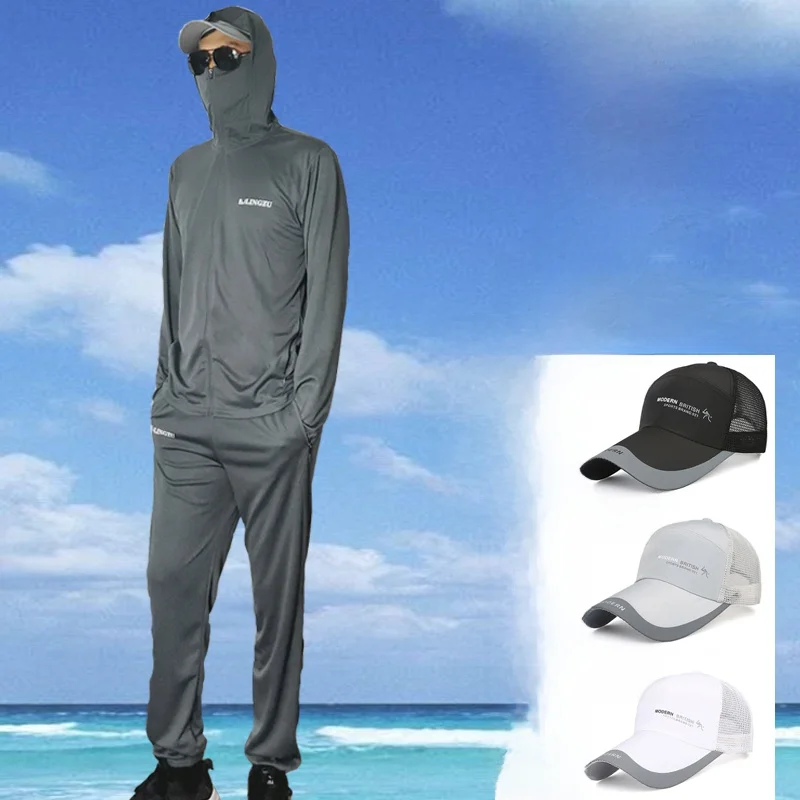 Ice Silk New Sle Long Sve Fiing Clothes Men's Summer Outdoor Sea Fiing Breathable Lure Hat Face Covering Fiing Suit