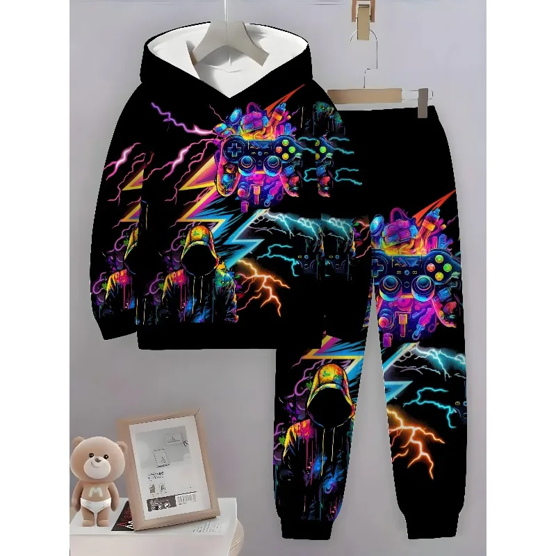 Men's Set 3D Handle Printed Sweatshirt 2-piece Set, Simple, Fashionable and Casual, Suitable for Autumn and Winter Seasons